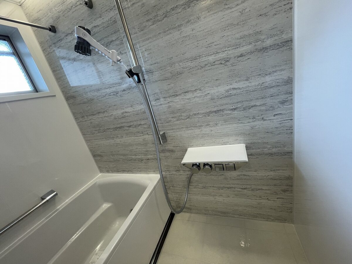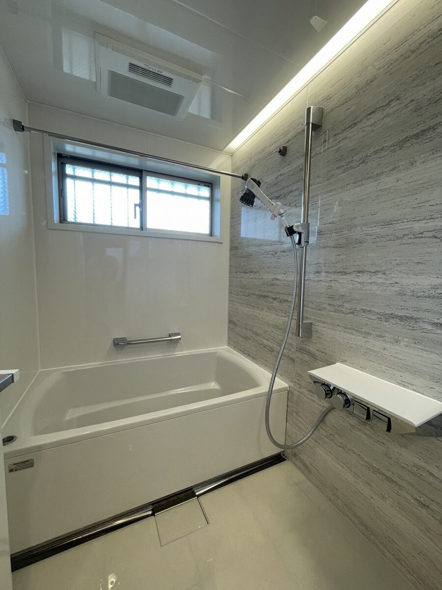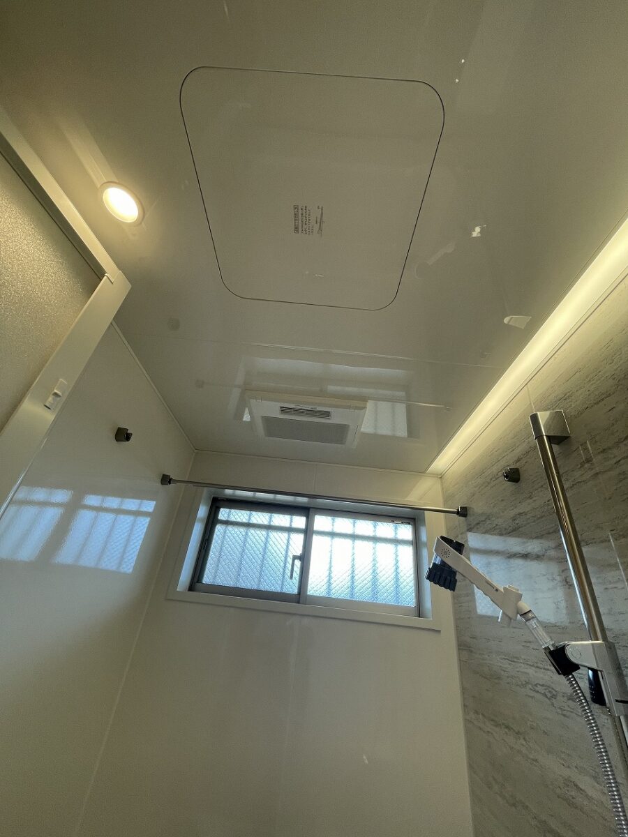 お客様がお選びになった、浴槽、パネル、ライン照明やタッチ水栓、ミラブルでラグジュアリーな浴室となりました。